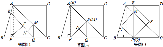 ③当PE与QM落在同一直线上时,如答图3-3所示.