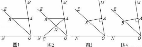 (1)如图1,若AB∥ON,则:①∠ABO的度数是 ;