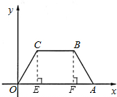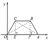 如图所示,在平面直角坐标系中,四边形OABC是等腰梯形.BC∥OA,∠COA=60°,OA、AB(OA>AB)是方程x2-11x+28=0的两个根.