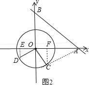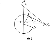 分析:如图1,作CF⊥OA于F,DE⊥OA于E,根据切线的性质得∠OCA=90°,由于OC=2,OA=4,则∠OAC=30°,∠COA=60°,在Rt△OCF中根据含30度的直角三角形三边的关系得OF=