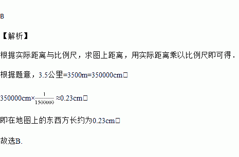 2013版《中华人民共和国全图》在左下角特别配有一幅放大的钓鱼岛插图,比例尺为1∶1 500 000,已知钓鱼岛东西方长约3.5公里,则在地图上的东西方长约为( )