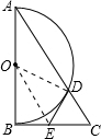 分析:(1)连接OD,OE,由AB为圆的直径得到三角形BCD为直角三角形,再由E为斜边BC的中点,得到DE=BE=DC,再由OB=OD,OE为公共边,利用SSS得到三角形OBE与三角形ODE全等,由全等三角形的对应角相等得到DE与OD垂直,即可得证;