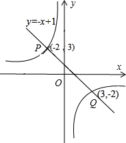 (2)画出双曲线和直线y=-x+1如图所示:![]()