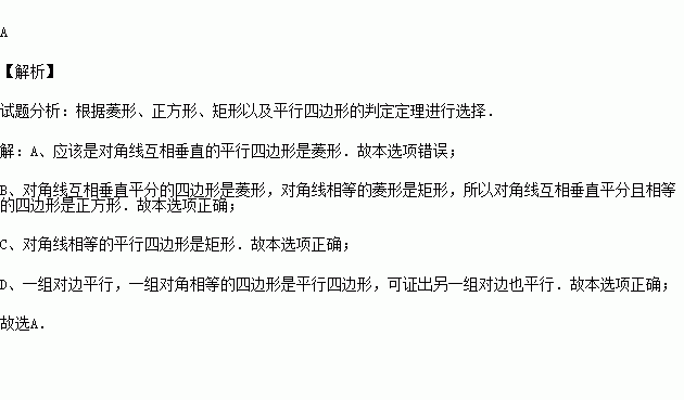 D.一组对边平行,一组对角相等的四边形是平行四边形