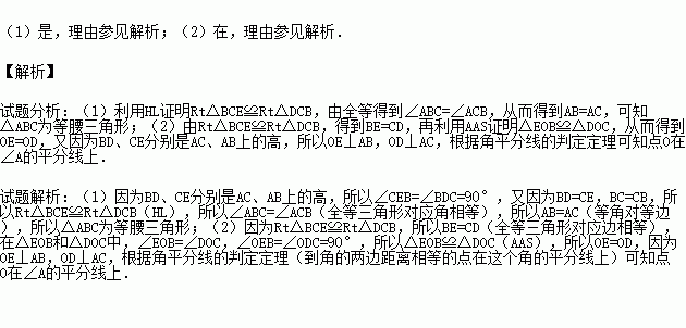 如图,△ABC 中,BD、CE分别是AC、AB上的高,BD与CE交于点O.BD=CE
