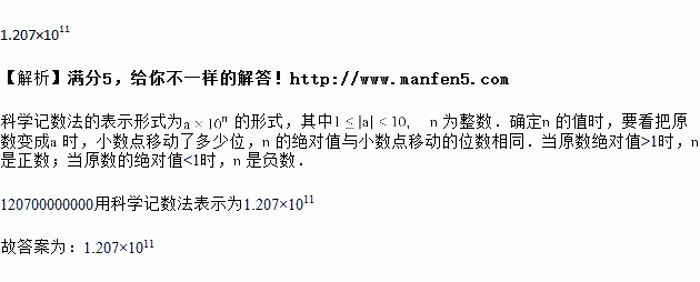 现在网购越来越多地成为人们的一种消费方式,在2016年的“双11”网上促销活动中天猫和淘宝的支付交易额突破120700000000元,将120700000000用科学记数法表示为____.