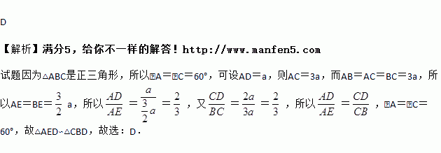 如图,在正△ABC中,D、E分别在AC、AB上,且