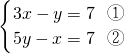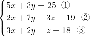 ③×3-②得:7x-y=35,代入①得:5x+3(7x-35)=25,x=5;