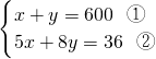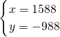 ①×5-②得:y=-988代入①得:x-988=600,x=1588.