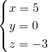 代入①得:25+3y=25,y=0;代入②得:2×5-3z=19,z=-3.