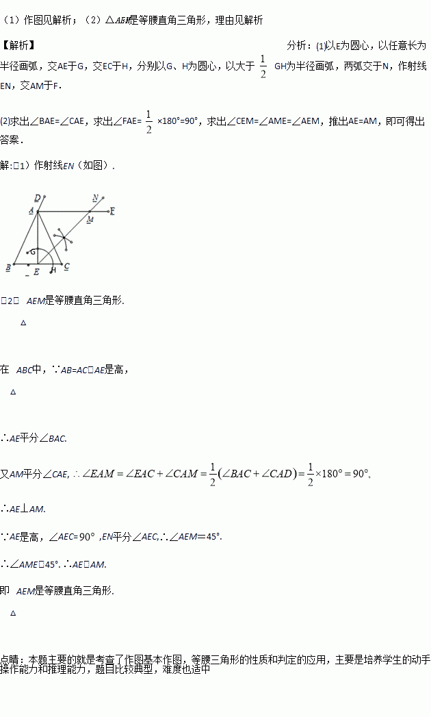 (1)用尺规作图:作∠AEC的平分线EN(保留作图痕迹,不写作法和证明);