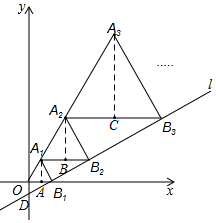 分析 先根据直线l:y=$\frac{\sqrt{3}}{3}$x-$\frac{\sqrt{3}}{3}$与x轴交于点B1,可得B1(1,0),OB1=1,∠OB1D=30°,再,过A1作A1A⊥OB1于A,过A2作A2B⊥A1B2于B,过A3作A3C⊥A2B3于C,根据等边三角形的性质以及含30°角的直角三角形的性质,分别求得A1的横坐标为$\frac{{2}^{1}-1}{2}$,A2的横坐标为$\frac{{2}^{2}-1}{2}$,A3的横坐标为$\frac{{2}^{3}-1}{2}$,进而得到An的横坐标为$\frac{{2}^{n}-1}{2}$,据此可得点A2017的横坐标.