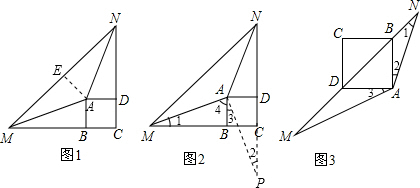 ②如图2,先利用SAS证明△ABM≌△ADP,得出AM=AP,∠1=∠2=∠3,再计算出∠PAN=360°-∠MAN-(∠3+∠4)=360°-135°-90°=135°.然后根据SAS证明△ANM≌△ANP,得到MN=PN,进而得到MN=BM+DN;