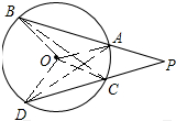分析 先连接AD、BC,OA、OB、OC、OD,根据圆心角的度数与所对的弧的度数的关系、圆周角定理求出∠BAD和∠ADP的度数,再根据三角形的外角的性质求出∠P的度数.