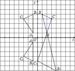 )的坐标,并把△ABC沿y轴对称得△A1B1C1,再把△A1B1C1沿x轴对称得△A2B2C2,请分别作出对称后的图形△A1B1C1与△A2B2C2