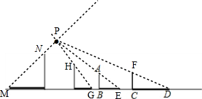 分析 (1)过影子顶端与竹竿顶端作射线,交点P即为所求;(2)作射线PA与地面的交点,可得线段BE即为所求;(3)连接光源P与影子顶端D,过C作垂直于地面的直线,与PD交于点F,CF即为所求.