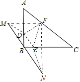 分析 如图作F关于直线AB的对称点M,作F关于直线BC的对称点N,连接MN,DM,EF,EN,由DF+DE+EF=DM+DE+EN,可知当D、E、M、N共线时,且BF⊥AC时,DE+EF+FD的值最小,最小值=2BF,求出BF的值即可解决问题.