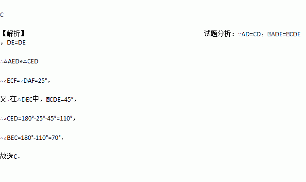 如图,在正方形ABCD中,∠DAF=25°,AF交对角线BD于E 点,则∠BEC=( )