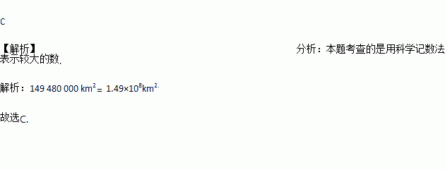 A. 149km2 B. 1.5×108km2 C. 1.49×108km2 D. 1.50×108km2