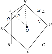 分析 如图,连结OA、OH,由于正方形ABCD和正方形EFGH全等,则OA=OH,∠OAD=45°,∠OHE=45°,所以∠OAH=∠OHA,则∠PAH=∠PHA,根据等腰三角形的判定得PA=PH,然后利用△HPM、△APQ为等腰直角三角形得到PM=$\sqrt{2}$PH,PQ=$\sqrt{2}$AP,所以PM=PQ,由此可判断八边形的边都相等.