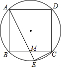 如图,ABCD为圆内正方形,AD=4,弦AE平分BC交BC于点M,则CE长为