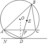 【题目】如图,⊙O是△ABC的外接圆,点E为△ABC内切圆的圆心,连接EB的延长线交AC于点F,交⊙O于点D,连接AD,过点D作直线DN,使∠ADN=∠DBC.