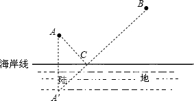 解答:解:作出点A关于海岸线的对称点A',连接A'B交海岸线于点C,