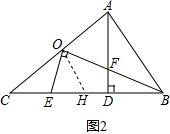 (2)由(1)证得OC=$\frac{1}{2}$AC,∠C=∠BAF,∠COE=∠ABF,得到△OCE∽△ABF,证得$\frac{OC}{AB}=\frac{OE}{BF}$,根据三角函数的定义得到tan∠ACB=tanα=$\frac{AB}{AC}$,求出$\frac{1}{2tanα}$=$\frac{OE}{BF}$,过O作AC垂线交BC于H,则OH∥AB,由△OEH∽△OFA,得到OF:OE=OA:OH,根据三角形的中位线的性质得到OH=$\frac{1}{2}$AB,OA=OC=$\frac{1}{2}$AC,推出OF=$\frac{OE}{tanα}$,然后列方程即可求出结论.