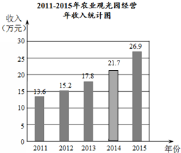 (3)2016年农业观光园经营年收入为:26.9×(1+26%)≈33.9(万元),