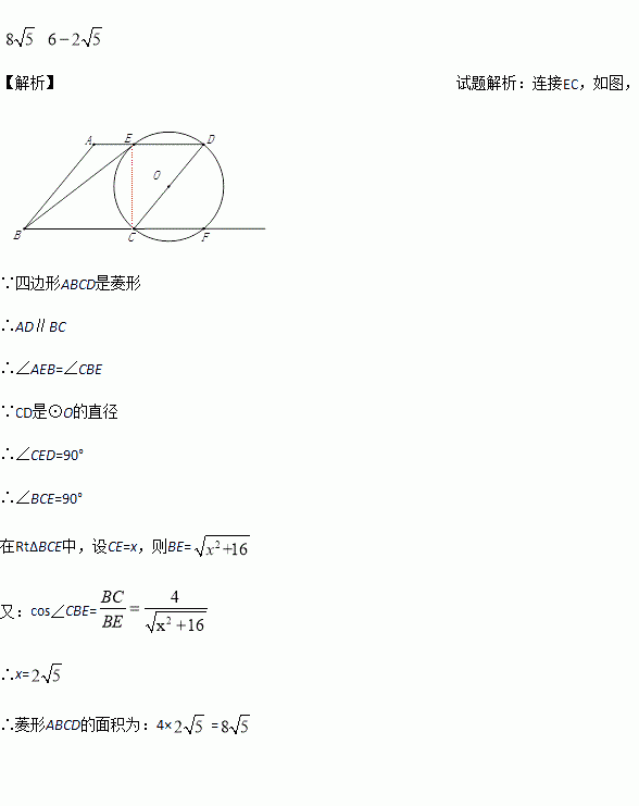 如图,在菱形ABCD中,AB=4,取CD中点O,以O为圆心OD为半径作圆交AD于E,交BC的延长线交于点F,
