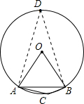 解答:解:在优弧AB上任找一点D,连接AD,BD,