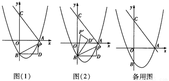 (3)如图(2),将△BDP绕点B 逆时针旋转,得到△BD′P′,当旋转角∠PBP′=∠OAC,且点P的对应点P′落在坐标轴上时,请直接写出点P的坐标.