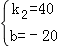 设 y 与 x 之间的函数关系式为 y=k2x+b,由题意,得 解得
