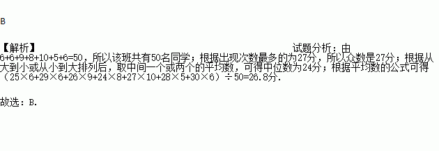 成绩(分) | 25 | 29 | 26 | 24 | 27 | 28 | 30 |