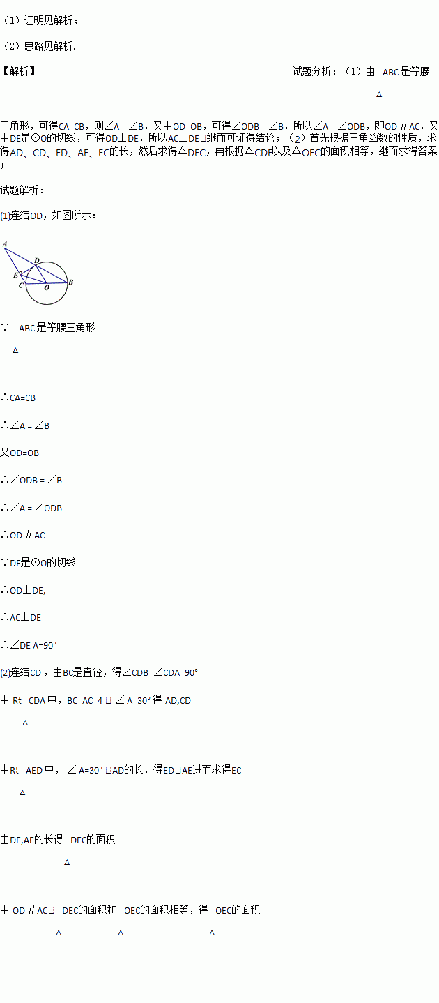 (2)若BC=4,写出求 △OEC的面积的思路.