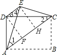 分析:过D作DF⊥AC于F,过E作EH⊥AC于H,根据矩形的性质得Rt△ABC≌Rt△CDA,再由折叠的性质得Rt△ABC≌Rt△AEC,则CE=CB=DA,CE与DA不平行,Rt△AEC≌Rt△CDA,得到∠1=∠2,易证∠1=∠4,于是有DE∥AC,即可判断四边形ACED是等腰梯形;由AB=4,AD=3,利用勾股定理得AC=5,再利用面积法计算出DF=EH=