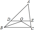 分析:由BO为角平分线得到一对角相等,再由DE与BC平行,得到一对内错角相等,等量代换可得∠ABO=∠DOB,利用等角对等边得到DB=DO,同理得到EC=EO,由DE=DO+OE等量代换后,将BD与CE的长代入即可求出值.