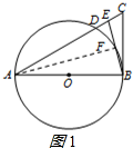 分析 (1)连接AF,由AB为⊙O的直径,得出∠AFB=90°,证△ABE为等腰三角形,得出∠BAF=$\frac{1}{2}$∠BAC,由∠EBC=$\frac{1}{2}$∠BAC,证出∠ABC=90°,BC⊥AB,即可得出BC与⊙O相切;