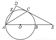 如图,AB为⊙O直径,E为⊙O上一点,∠EAB的平分线AC 交 ⊙O于C点,过C点作CD⊥A E的延长线于D点,直线CD与射线AB交于P点.