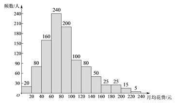 (2)调查小组随机调查了该市1000人上一年乘坐地铁的月均花费(单位:元),绘制了频数分布直方图,如图所示.