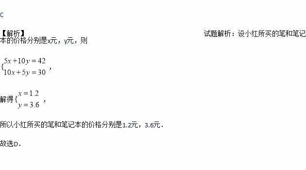 根据以下对话,可以求得小红所买的笔和笔记本的价格分别是( )