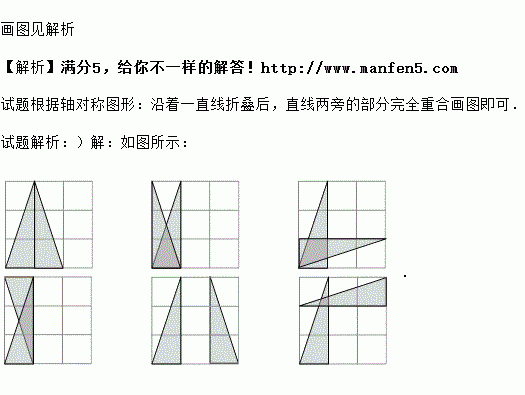 在的正方形网格中,有一个以格点为顶点的三角形(阴影部分)如图所示,请你在图①,图②,图③中,分别画出一个与该三角形成轴对称且以格点为顶点的三角形,并将所画三角形涂上阴影.(注:所画的三个图不能重复.)![]()