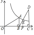 分析 过E作EF⊥BD于F,于是得到EF∥CD得到$\frac{BE}{ED}$=$\frac{BF}{FC}$,根据E是BD的中点,得到BF=FC,EF=$\frac{1}{2}$DC,设AB=a,根据全等三角形的性质得到BC=a,CD=OB=3,于是得到D(3+a,3),A(3,a),根据反比例函数图象上点的坐标特征即可得到结论.