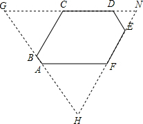 分析 延长并反向延长AB,CD,EF,构成一个等边三角形,再将这个六边形以外的多边形减去即可得这个六边形的周长.