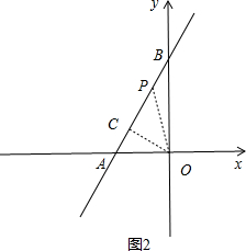 (2)当P在线段AB上时,即0≤t≤4时,如图2,连接OP,过O作OC⊥AB于点C,![]()