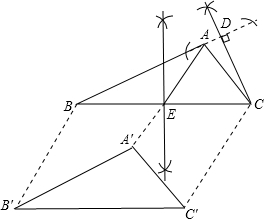 分析:首先延长AB,作CD⊥AB,再作出BC的垂直平分线,即可得出AE是BC边上的中线,再平移A,B,C即可得出图形.