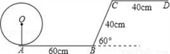 一位小朋友在粗糙不打滑的“Z”字形平面轨道上滚动一个半径为10cm的圆盘,如图所示,AB与CD是水平的,BC与水平面的夹角为60°,其中AB=60cm,CD=40cm,BC=40cm,那么该小朋友将圆盘从A点滚动到D点其圆心所经过的路线长为___________cm