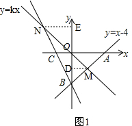 解答 解:(1)∵直线AB:y=x-4分别与x、y交于A、B两点,