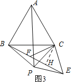 £¨3£©Ê×Ïȸù¾ÝÌâÒ⻳öͼÐΣ¬¹ýµãC×÷CH¡ÍBE£¬´¹×ãΪH£®ÏÈÖ¤¡÷ACP¡Õ¡÷BCE£¬´Ó¶øµÃµ½¡ÏCBH=30¡ã£¬Óɺ¬30¡ãÖ±½ÇÈý½ÇÐεÄÐÔÖÊ¿ÉÇóµÃCHµÄ³¤£¬ÒÀ¾Ý¹´¹É¶¨Àí¿ÉÇóµÃFHµÄ³¤£¬È»ºóÓɵÈÑüÈý½ÇÐÎÈýÏߺÏÒ»µÄÐÔÖʿɵõ½HE=FH£¬¹Ê´Ë¿ÉÇóµÃEFµÄ³¤£®