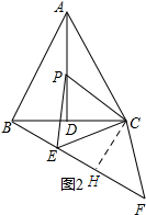 £¨2£©¹ýµãC×÷CH¡ÍBE£¬´¹×ãΪH£¬ÏÈÒÀ¾ÝµÈÑüÈý½ÇÐÎÈýÏߺÏÒ»µÄÐÔÖÊÇóµÃ¡ÏCAD=30¡ã£¬È»ºóÓÉ¡÷ACP¡Õ¡÷BCE¿ÉÇóµÃ¡ÏCBH=30¡ã£¬ÒÀ¾Ýº¬30¡ãÖ±½ÇÈý½ÇÐεÄÐÔÖÊ¿ÉÇóµÃCHµÄ³¤£¬´Ó¶ø¿ÉÇóµÃBHµÄ³¤£¬È»ºóÔÚ¡÷ECHÖÐÒÀ¾Ý¹´¹É¶¨Àí¿ÉÇóµÃEHµÄ³¤£¬¹Ê´Ë¿ÉÇóµÃBEµÄ³¤£¬×îºó¸ù¾ÝAP=BEÇó½â¼´¿É£»
